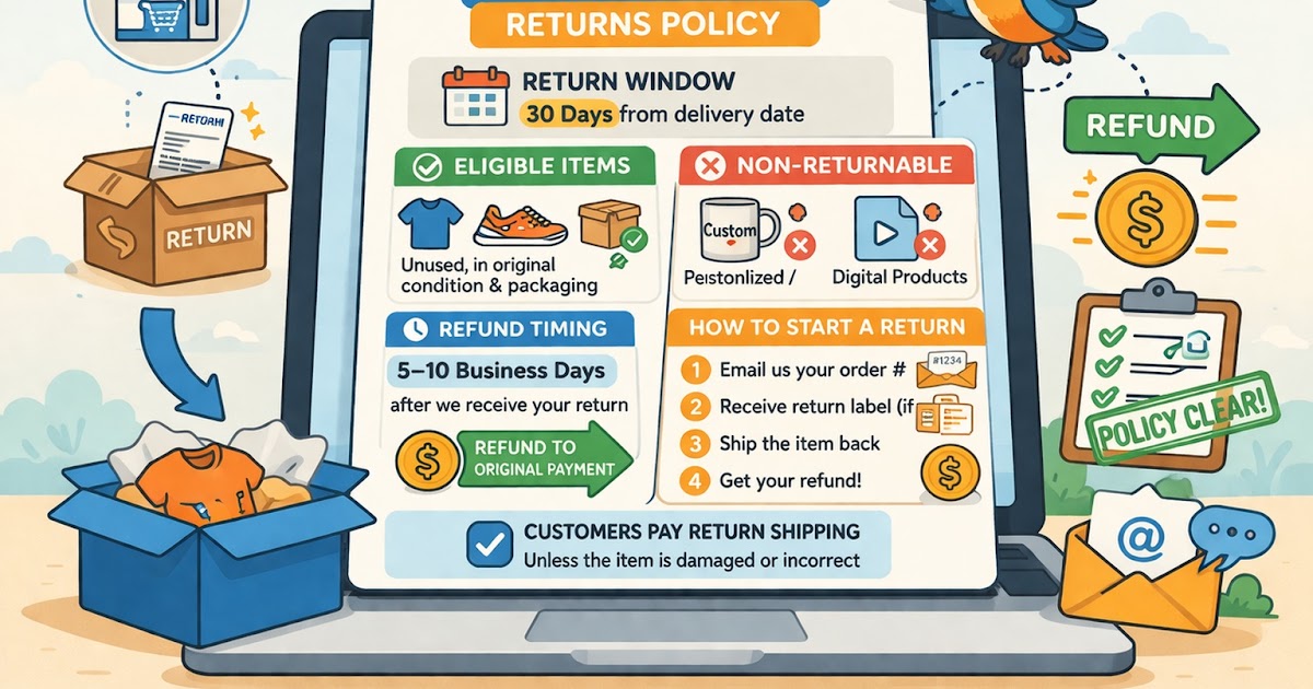 A good returns policy answers the practical questions before a customer has to ask them. It should not try to sound impressive. It should make the process understandable.