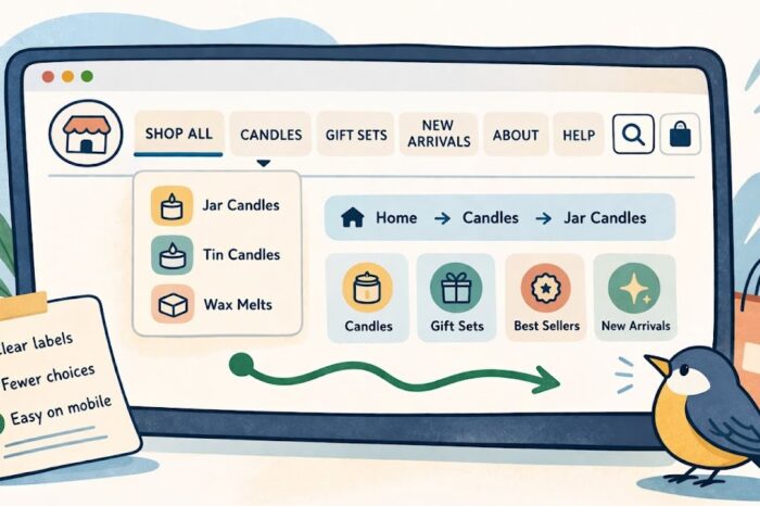 A simple example: imagine a small candle shop with a menu that says Shop, Collections, Edit, Seasonal, Signature, Journal, Story, and Support. A new shopper may not know whether “Signature” means best sellers, core scents, or something else. A simpler setup like Shop All, Candles, Gift Sets, New Arrivals, About, and Help would usually be easier to use.