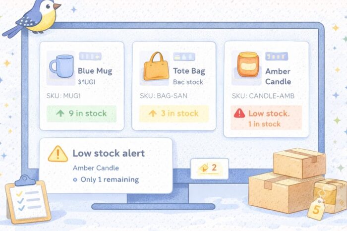 A simple example: imagine a small candle shop with three best-selling scents. If one of them drops below 4 jars and the owner does not notice until the last one sells, the next customer may see “out of stock” before there is time to pour more. A basic low-stock alert or weekly review would catch that earlier.