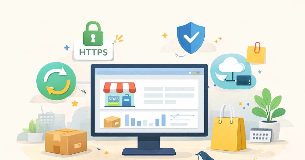 The first layer is simpler. You want a store that loads over HTTPS, stays updated, and can recover fast if something breaks. Those three basics will not make your business invincible, but they do cover a lot of preventable mess.