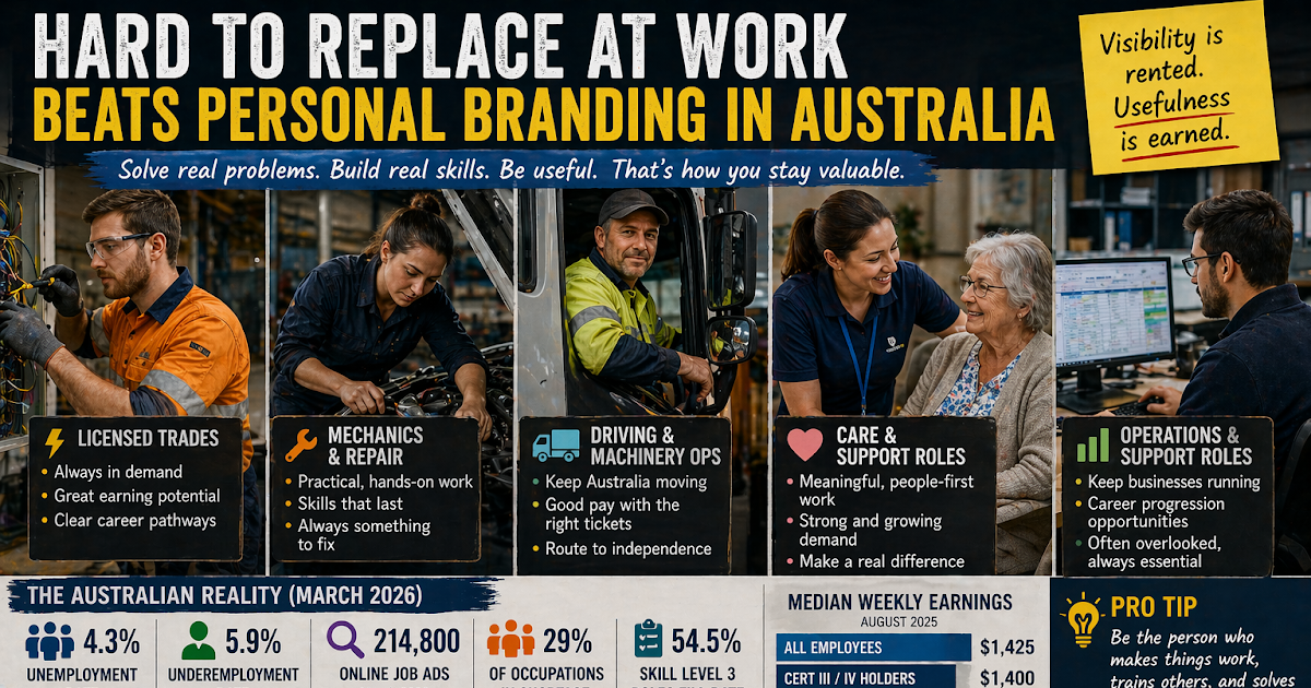 For most Australians trying to build a stable working life, the better question is not “How do I look more impressive?” It is “What can I do, prove, and improve that would be genuinely annoying to lose?”